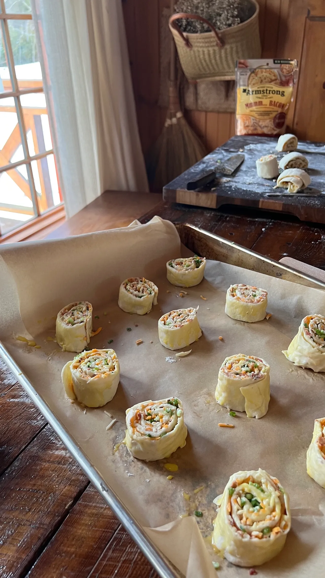 - Rouler les feuilles délicatement sur la longueur en formant deux cylindres, puis couper en 8 brioches.