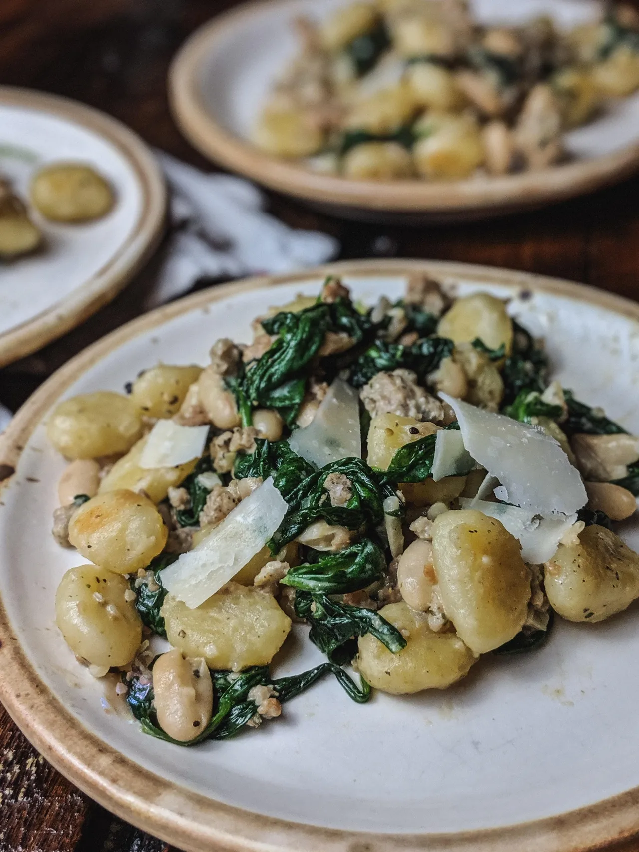 Gnocchis épinards, haricots blancs, chaire de saucisse & parmesan