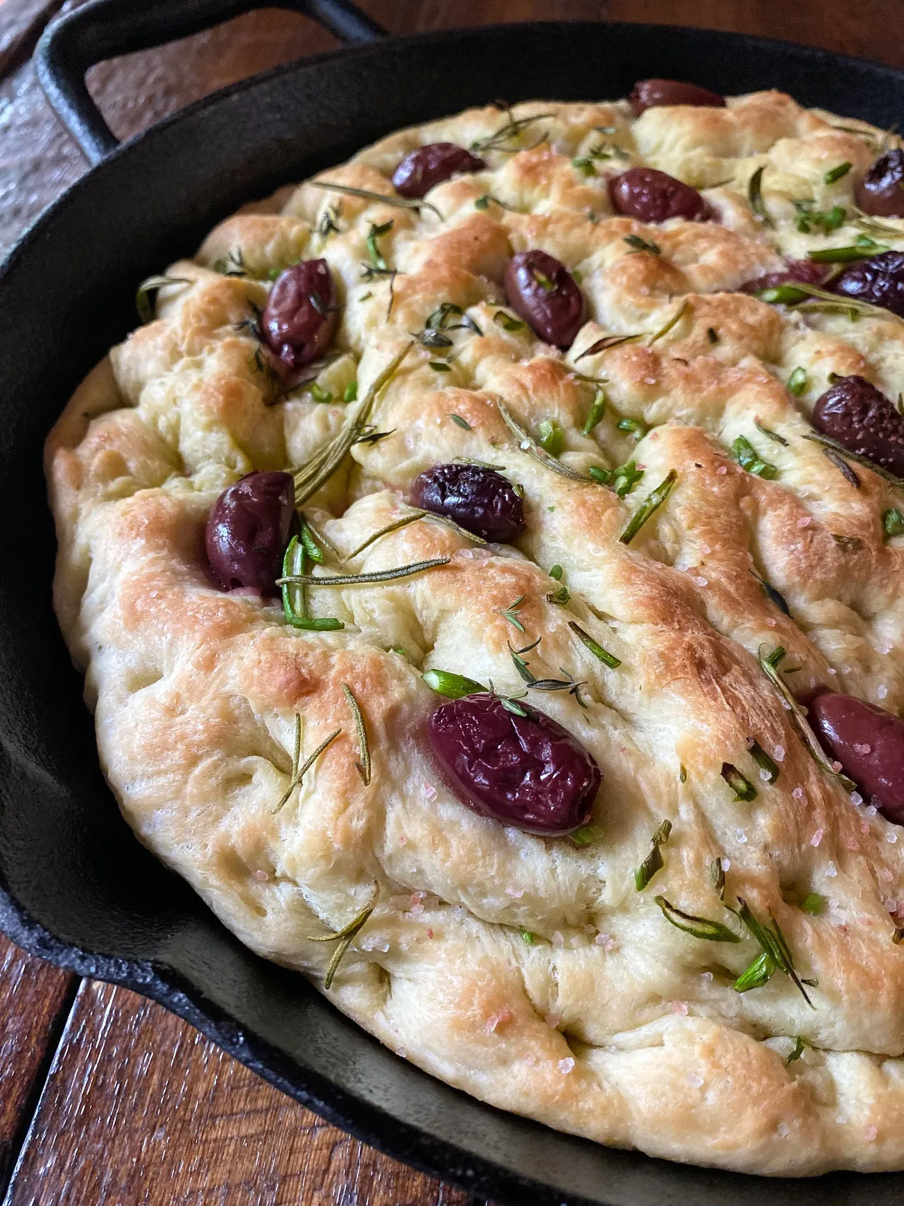 Ma foccacia est comme j'aime, moins gonflée et épaisse, plus croutillante et gouteuse. Elle ressemble beaucoup à celles que j'ai mangé en Italie!