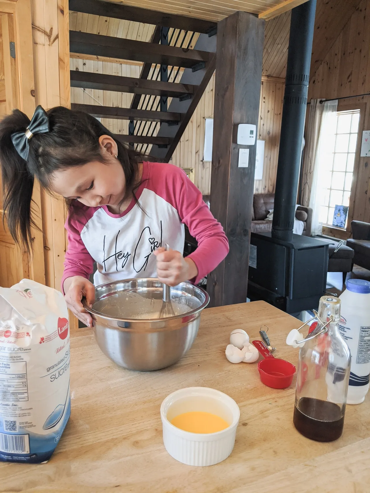 - Ajouter les œufs, puis incorporer le lait graduellement en mélangeant jusqu'à ce qu'il n'y ai plus du grumeaux.