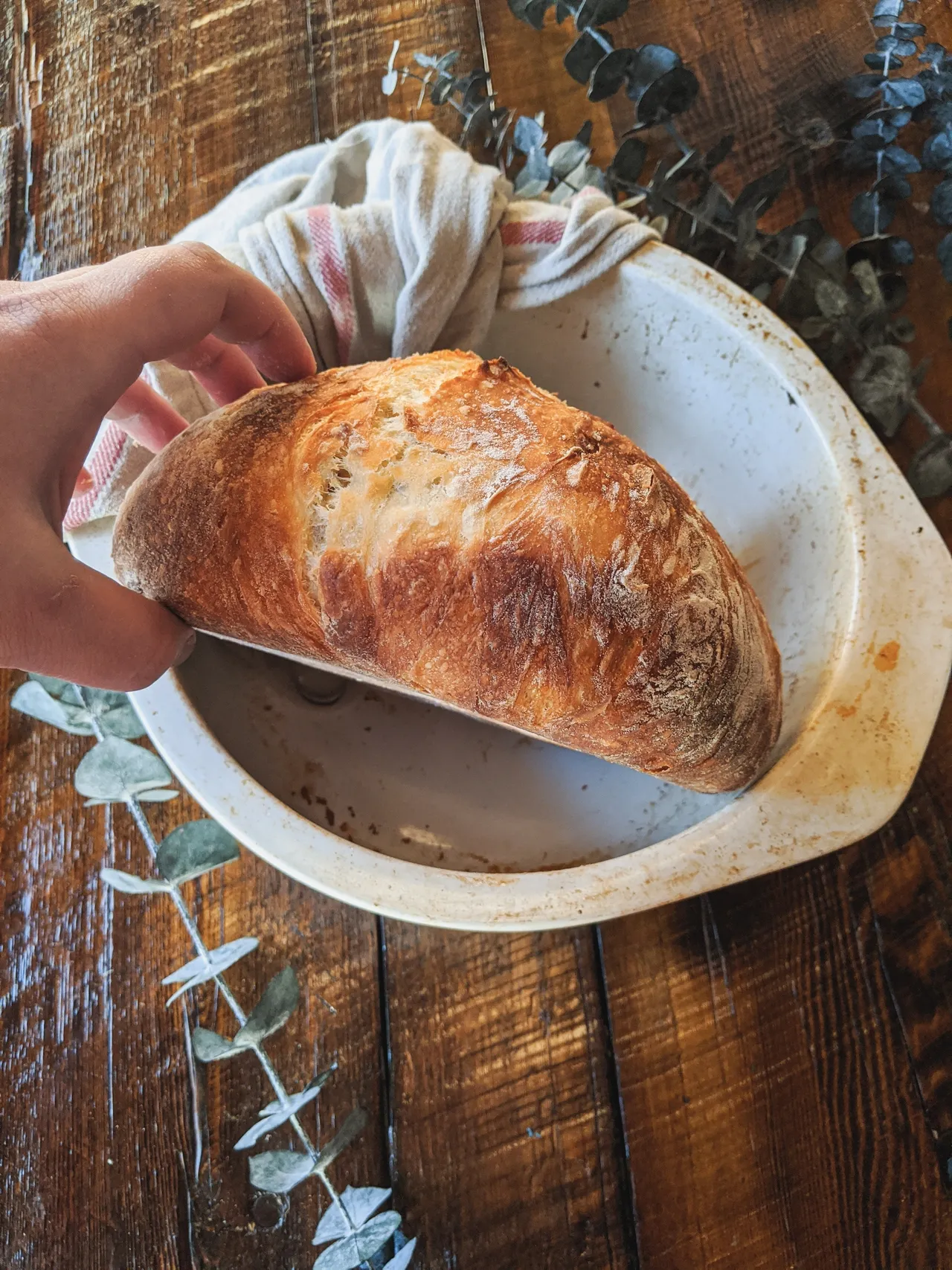- Quand le four est prêt, rabattre les côtés de la pâte une deuxième fois pendant 2 minutes (ceci lui donnera un petit look rustique également), puis déposer la boule dans la cocotte