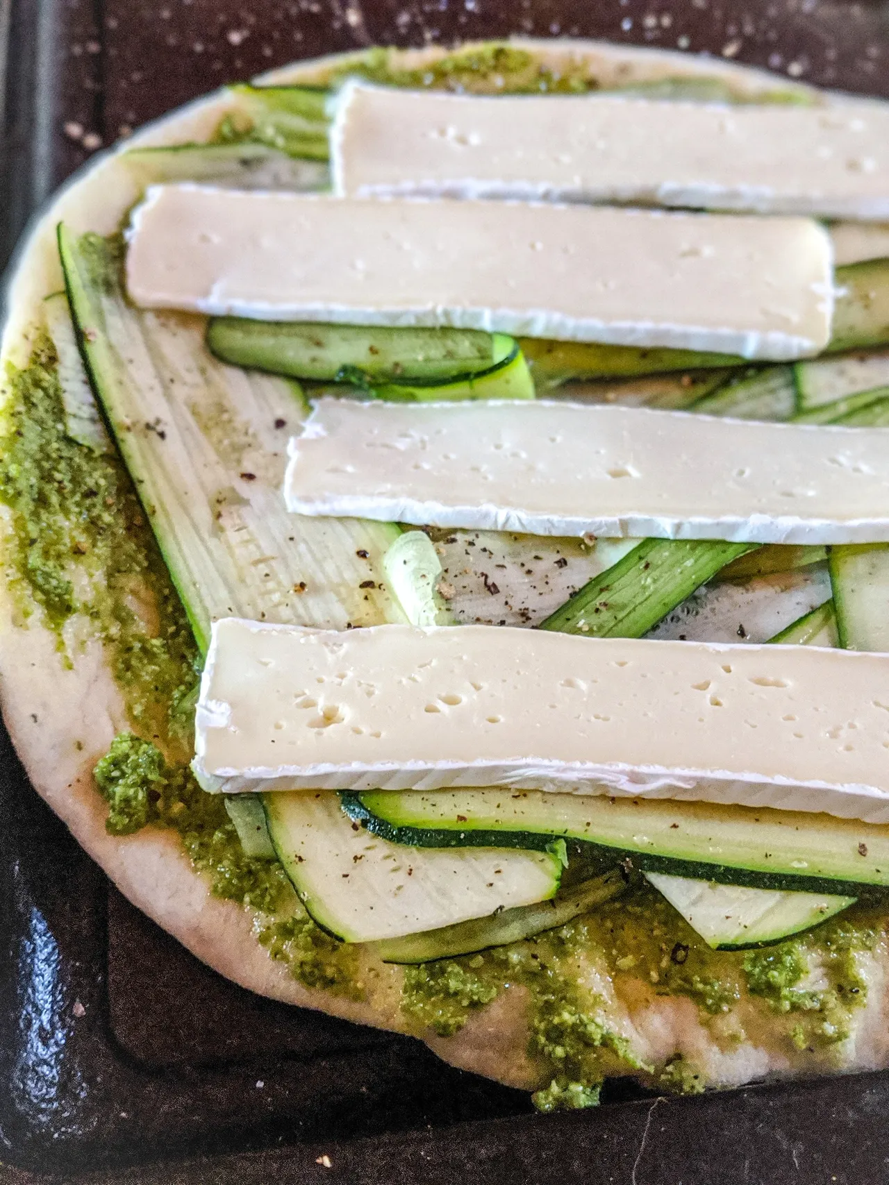 naan pesto, courgettes & brie