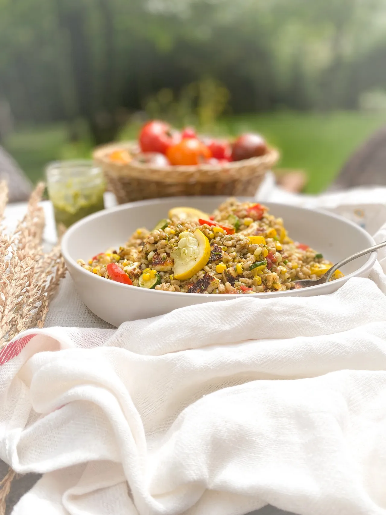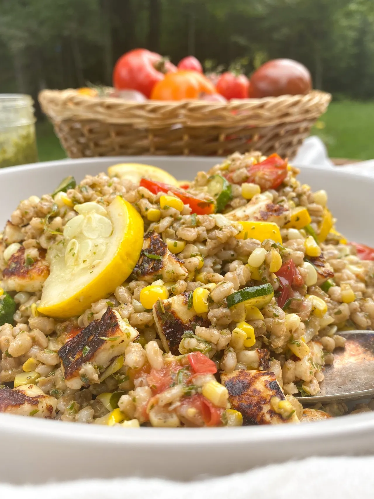 Orge légumes, pesto & halloumi grillé