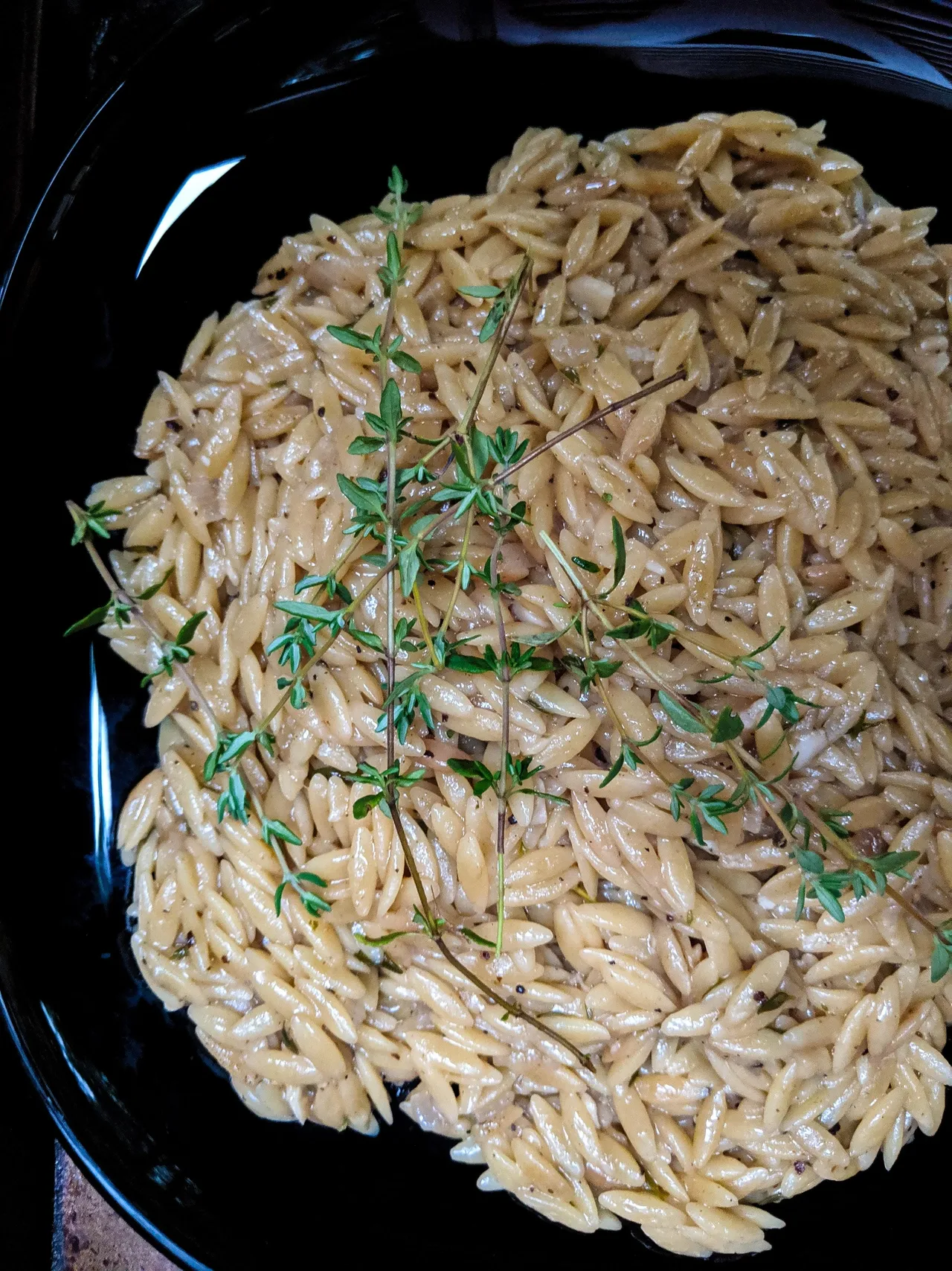 - Ajouter l’eau, couvrir et cuire sans toucher pendant environ 12 minutes ou jusqu’à ce que l’orzo soit al dente.