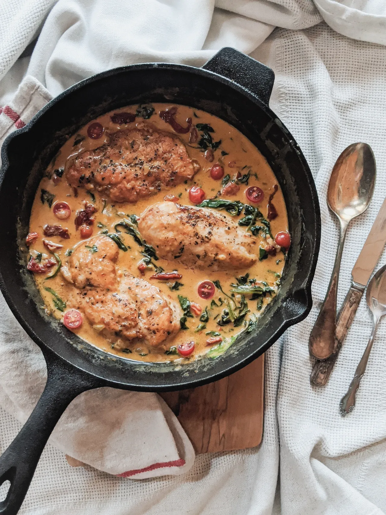- Lorsque ça mijote, déposer les poitrines de poulet dans la sauce pour terminer leur cuisson. Laisser mijoter à feu doux 10 à 15 minutes jusqu'à ce que le poulet soit bien cuit.