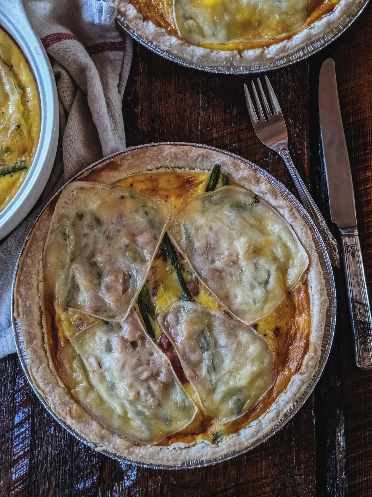 Quiche asperges, lardons, pommes de terre & fromage à raclette