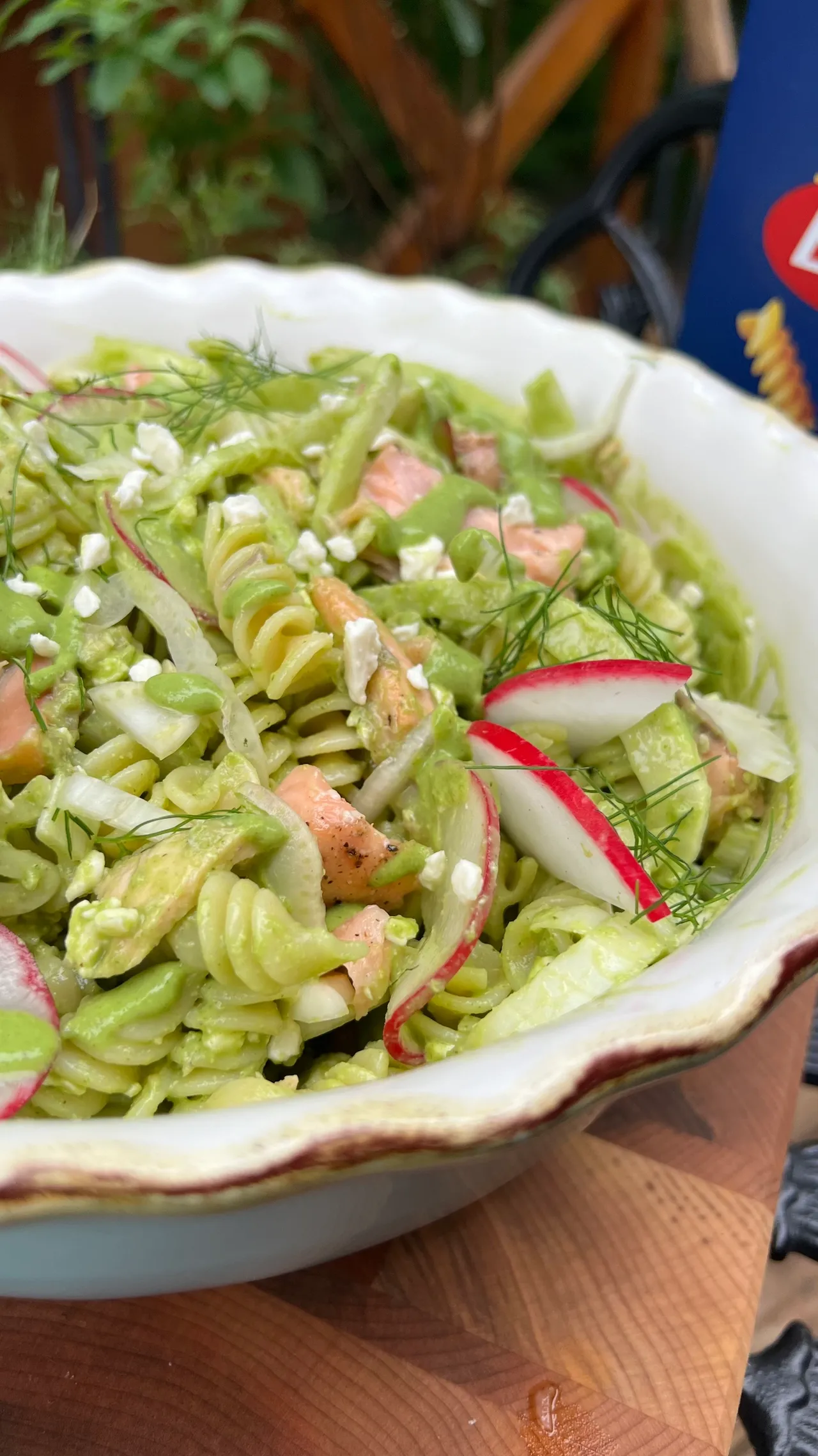 Salade de Rotini saumon, fenouil, sauce déesse verte