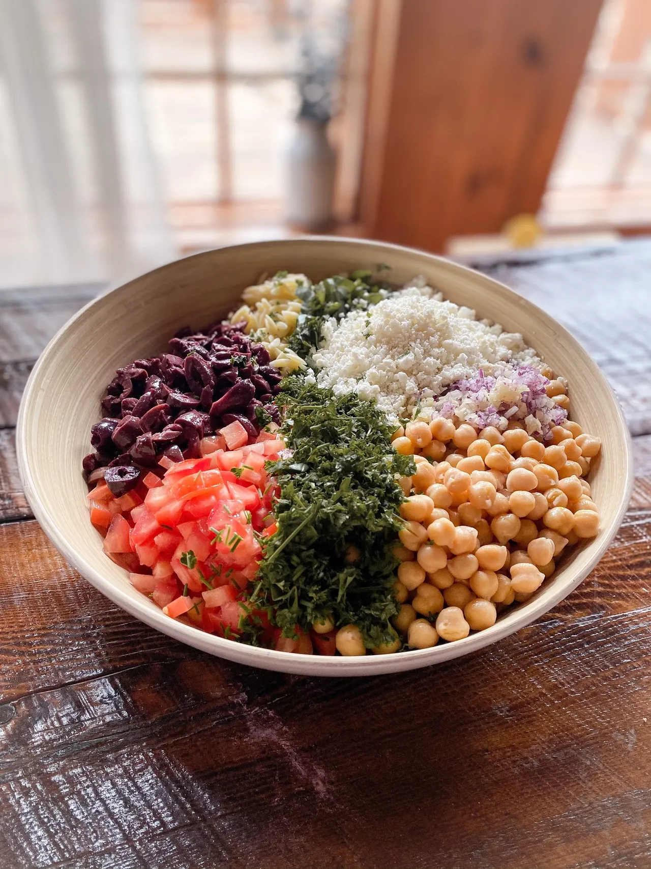 - Lorsque l'orzo est tiède, ajouter le reste des ingrédients, puis bien mélanger.