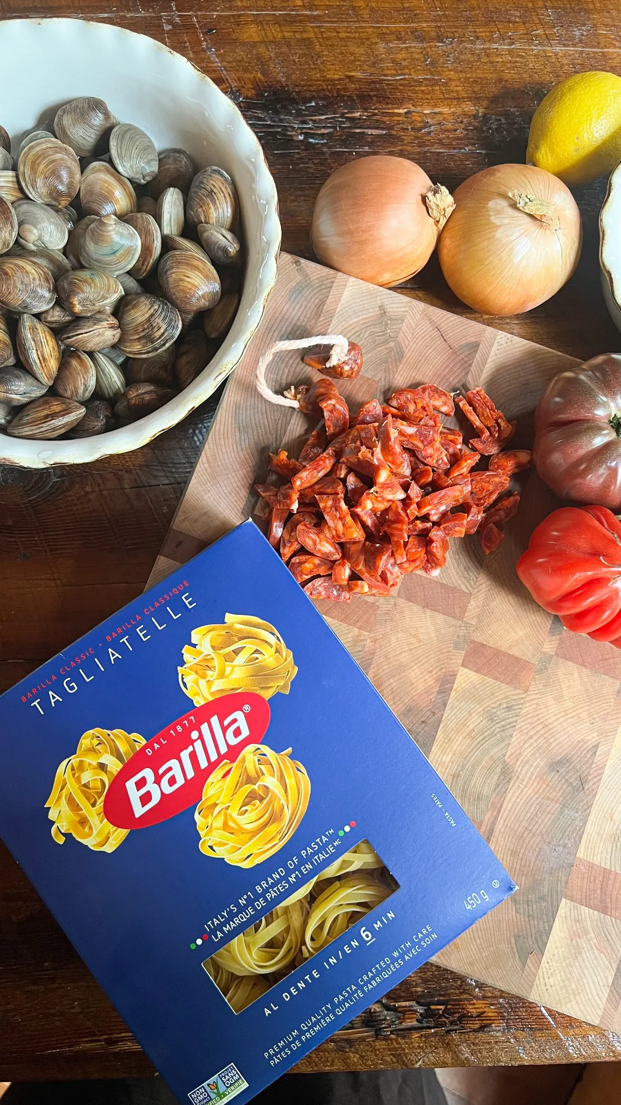 Tagliatelles palourdes et chorizo